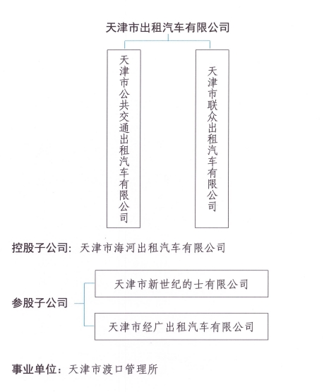 天津市出租汽车有限公司系天津市公交集团旗下国有全资公司,成立于1975年1月,注册资本6100.5万元,工商注册地址天津市河北区辰纬路52号。2018年10月,企业类型由全民所有制改制为有限责任公司。所属企业包括:天津市海河出租汽车有限公司、天津市联众出租汽车有限公司、天津市华林客运出租汽车公司、天津市公共交通出租汽车有限公司。