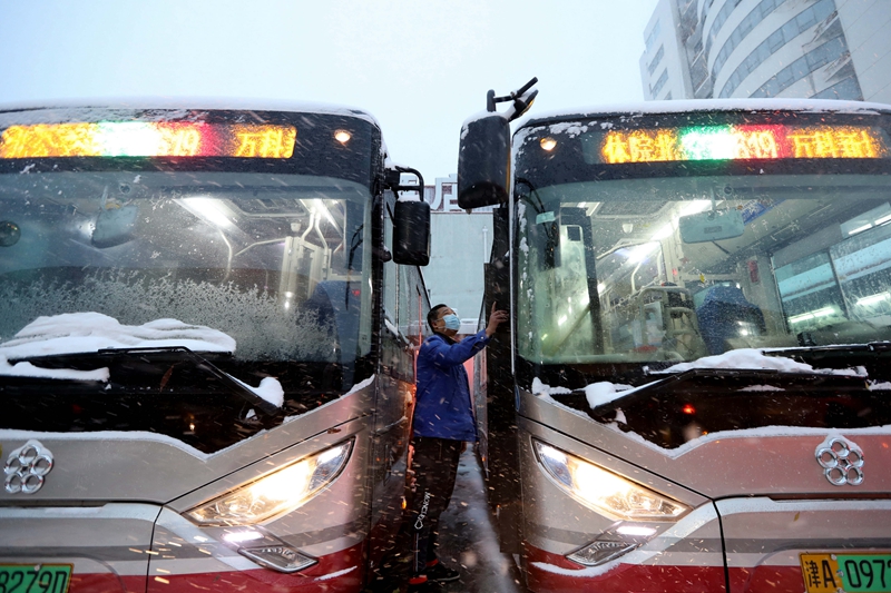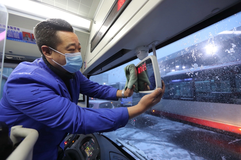 117日凌晨4点,大片的雪花被凛冽的寒风夹裹着飞舞盘旋,在大多数人酣然入睡时,全市各个公交场站内,公交干部职工战雪斗寒的热情在逐渐高涨。第二客运有限公司体北中心车队,坚守在保出库一线的干部职工,顶着刺骨的寒风,用铁锨清除场站地面的冰雪,揭去大雪给车身盖上的厚厚“棉被”,为首班车出库扫雪开路。已到岗的驾驶员迅速进入工作状态,启动引擎预热车辆,清扫上下客门积雪,检查灯光、制动、雨刷,开启暖风……严阵以待,确保首班车准时发出。第三客运有限公司保养车间班子带领45名车间维修工,分别奔赴17个基层车队,对车辆轮胎、电路、空滤、转向、制动等关键部位进行发车前安全“体检”。公交8路等车队的候车大厅开启暖风,站务员提前铺好棉座垫,准备好暖心壶,为市民乘客提供热水。海河教育园中心车队、三号院中心车队、民航中心车队在始发站启用应急预备车辆增设临时候车室,为在风雪中候车的乘客打造温暖“避风港”。
