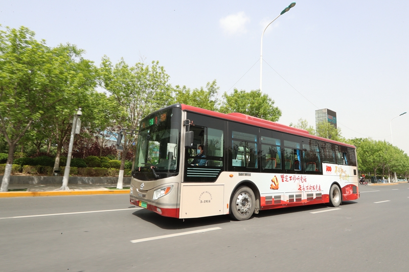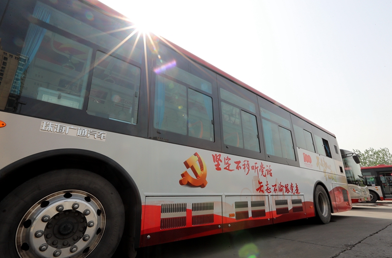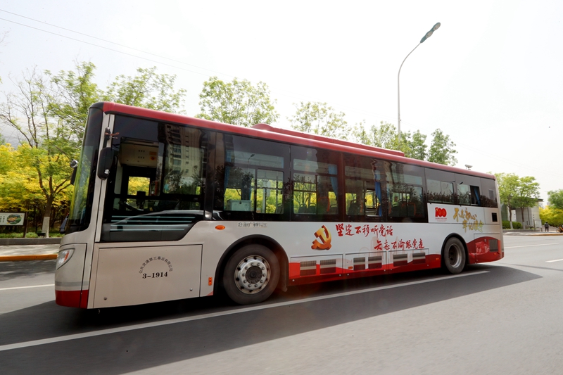 为庆祝中国共产党成立100周年,“五一”小长假前夕,天津市公交集团“庆祝中国共产党成立100周年”主题车正式上路运营。简洁大方的背景和鲜艳的中国共产党成立100周年庆祝活动标识,在阳光的映照下格外醒目,为津城增添又一道靓丽的流动风景线。