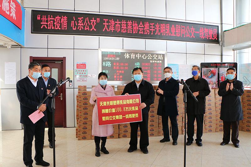 近日,我市公交集团驾驶员的朋友圈被爱心酸奶刷屏,收到酸奶的驾驶员们纷纷感激来自社会的关爱。原来,3月11日,市慈善协会携手天津光明梦得乳品有限公司,到体育中心公交站慰问奋战在防控疫情一线的公交职工,捐赠了价值100万元的光明酸奶。(市人大常委会原副主任、市慈善协会会长散襄军,市慈善协会副会长兰国樑,天津光明梦得乳品有限公司董事长于静参加了此次慰问。集团党委书记、董事长张军,党委副书记、总经理王岩,党委副书记、工会主席李惠来带领一线驾驶员代表参加了捐赠仪式。)这些酸奶既是对公交职工的健康补给,更是精神鼓励,让自疫情防控以来一直工作在一线的干部职工能够在各自的岗位上更好地凝心聚力打赢这场疫情防控攻坚战。市公交集团向市慈善协会、天津光明梦得乳品有限公司送去锦旗表示感谢。