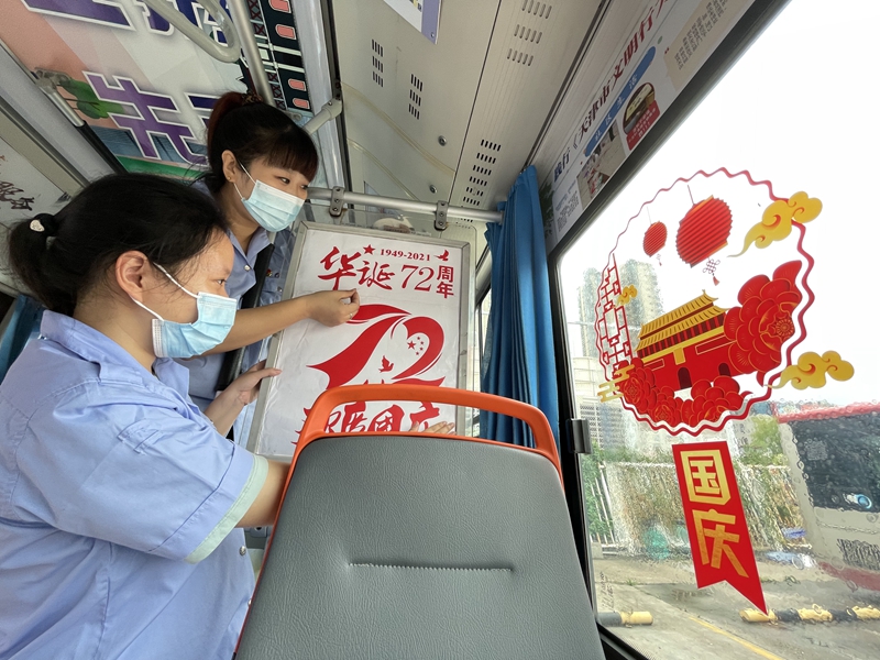 装扮节日主题车厢 喜庆红火欢度国庆